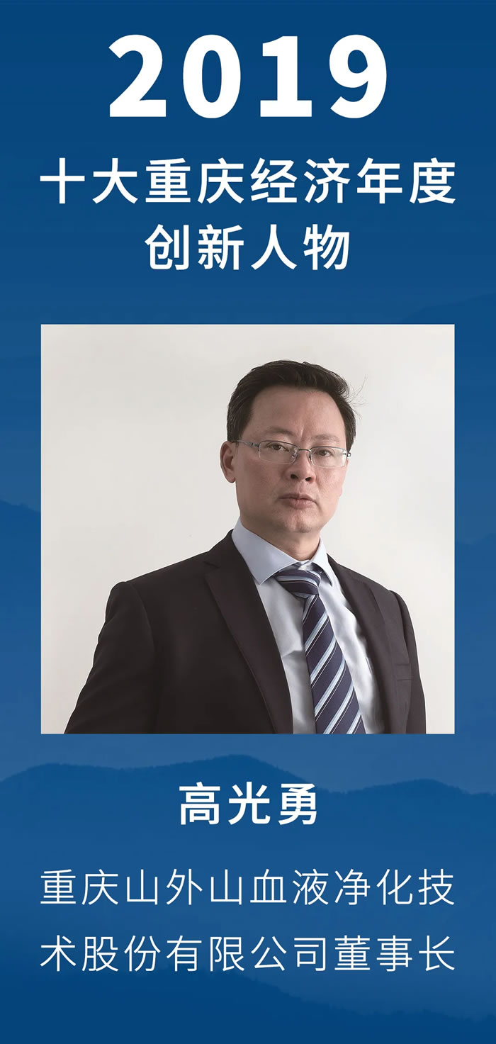 本屆評選以“開放、智慧、創(chuàng)新、穩(wěn)健”為主題,緊扣時代特征,展現(xiàn)年度經(jīng)濟(jì)亮點(diǎn),設(shè)立2019十大重慶經(jīng)濟(jì)年度人物、2019十大重慶經(jīng)濟(jì)年度創(chuàng)新人物。同時,還評選出2019十大兩江新區(qū)經(jīng)濟(jì)年度人物,首設(shè)2019十大重慶經(jīng)濟(jì)年度人物·社會責(zé)任獎。重慶山外山血液凈化技術(shù)股份有限公司董事長高光勇榮獲“2019十大重慶經(jīng)濟(jì)年度創(chuàng)新人物”。